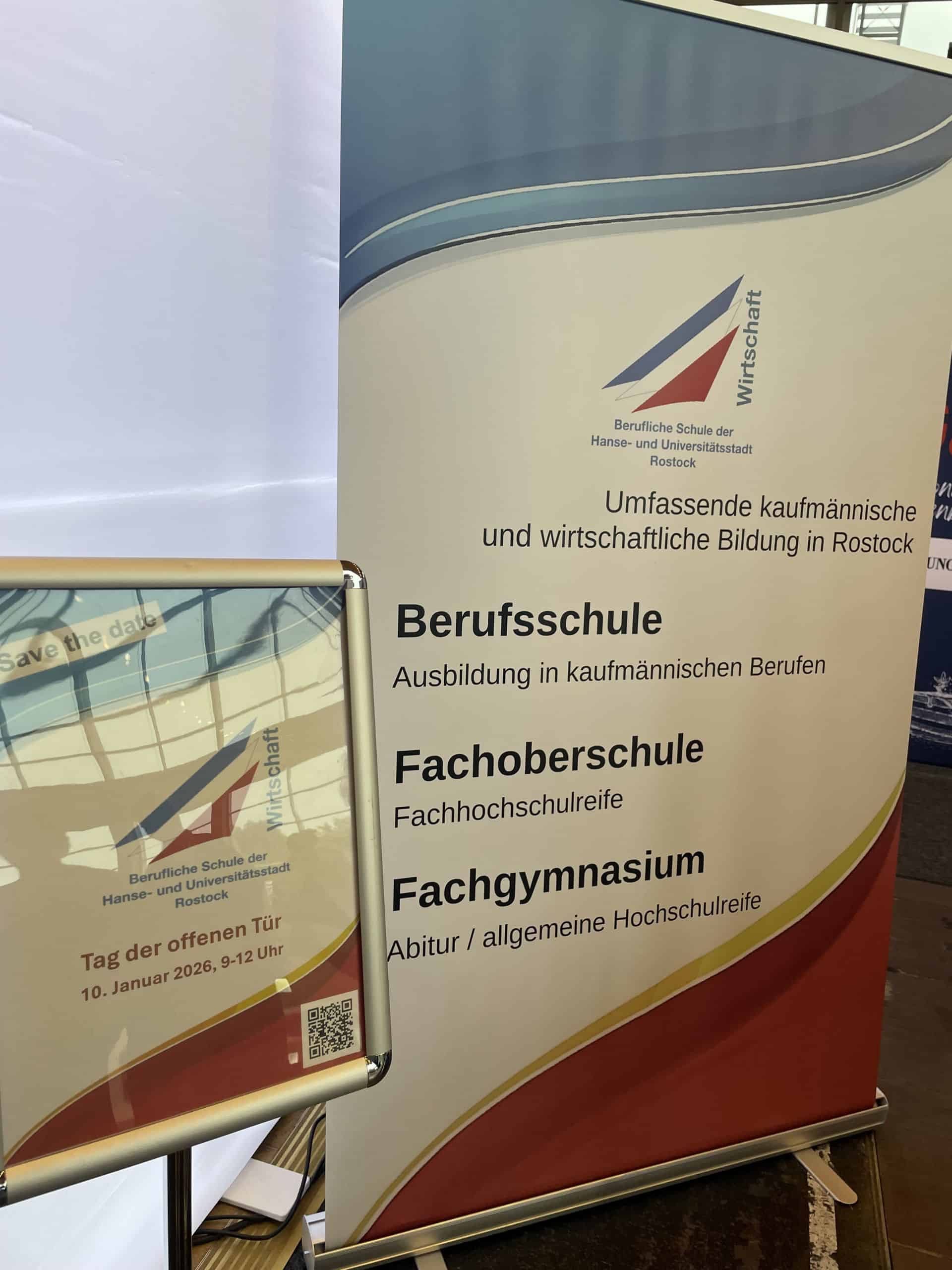 Auch in diesem Jahr präsentierte sich unsere Schule auf der Jobfactory, einer der größten Berufsmessen Mecklenburg-Vorpommerns, welche in der HanseMesse stattfand. Am 10. Und 11. Oktober fanden sich Firmen und Bildungsanbieter aus allen Bereichen ein, um rund um das Thema berufliche Perspektiven nach dem Schulabschluss zu informieren. Ob aus dem medizinischen, dem technischen oder dem pädagogischen Bereich, der Hotellerie oder Gastronomie – für alle Interessierten war etwas Passendes dabei. Natürlich durfte die Berufliche Schule Wirtschaft nicht fehlen, um den kaufmännischen Bereich angemessen zu vertreten. Unser Berufsschulzweig liefert im dualen Ausbildungssystem die theoretischen Grundlagen, um die Ausbildung erfolgreich zu absolvieren. Die [...]